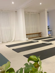 Dans une salle lumineuse et chaleureuse, le studio propose tous les équipements nécessaires pour débuter dans la pratique du yoga ou la confirmer.
